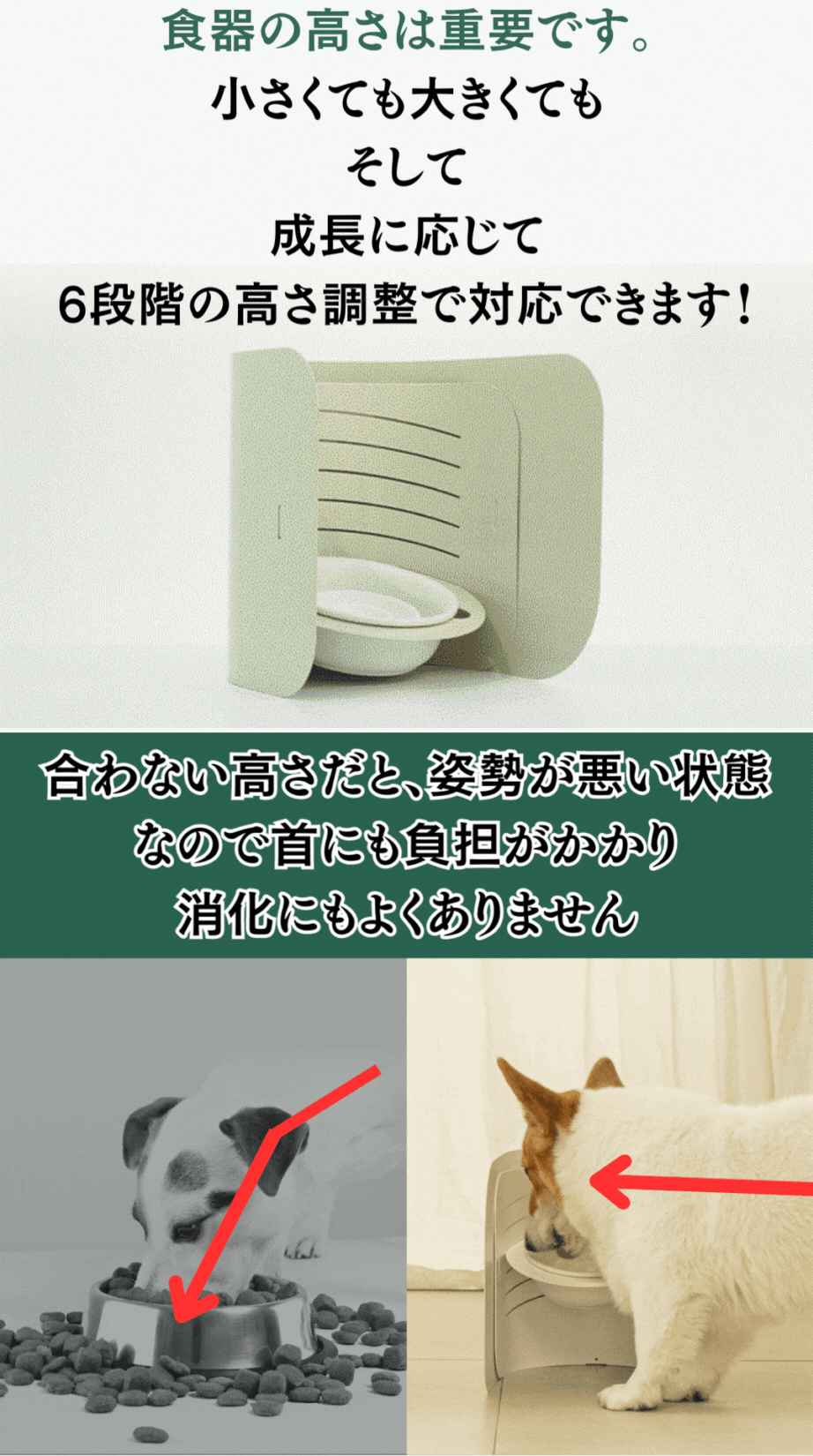 6段階の高さ調整で猫・子犬〜中型犬まで対応!